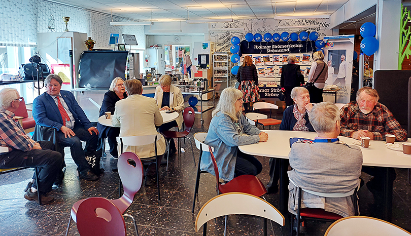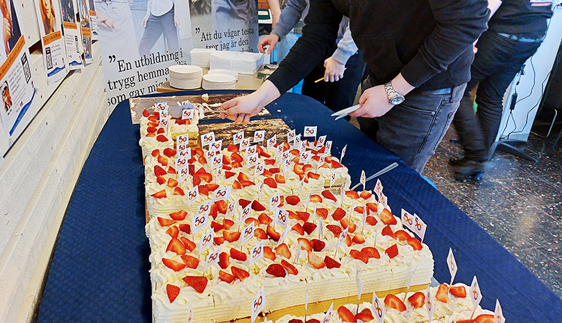 Hjalmar Strömerskolan avslutade sitt jubileumsår den 5 april med ett rejält tårtkalas och mingel. Elever och personal, specialinbjudna gäster och tidigare elever firade tillsammans och det blev ett kärt återseende för flera av dem som inte setts på många år.